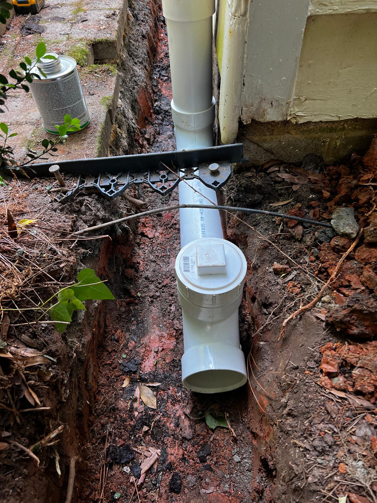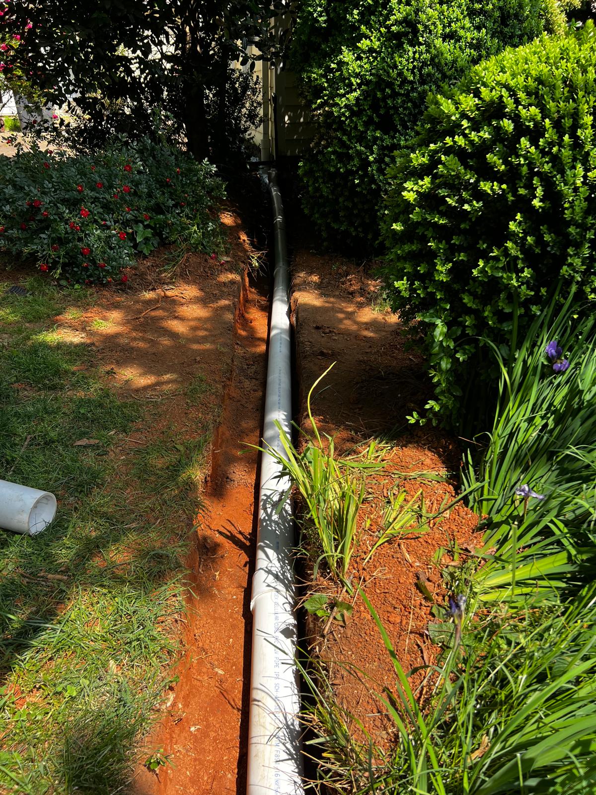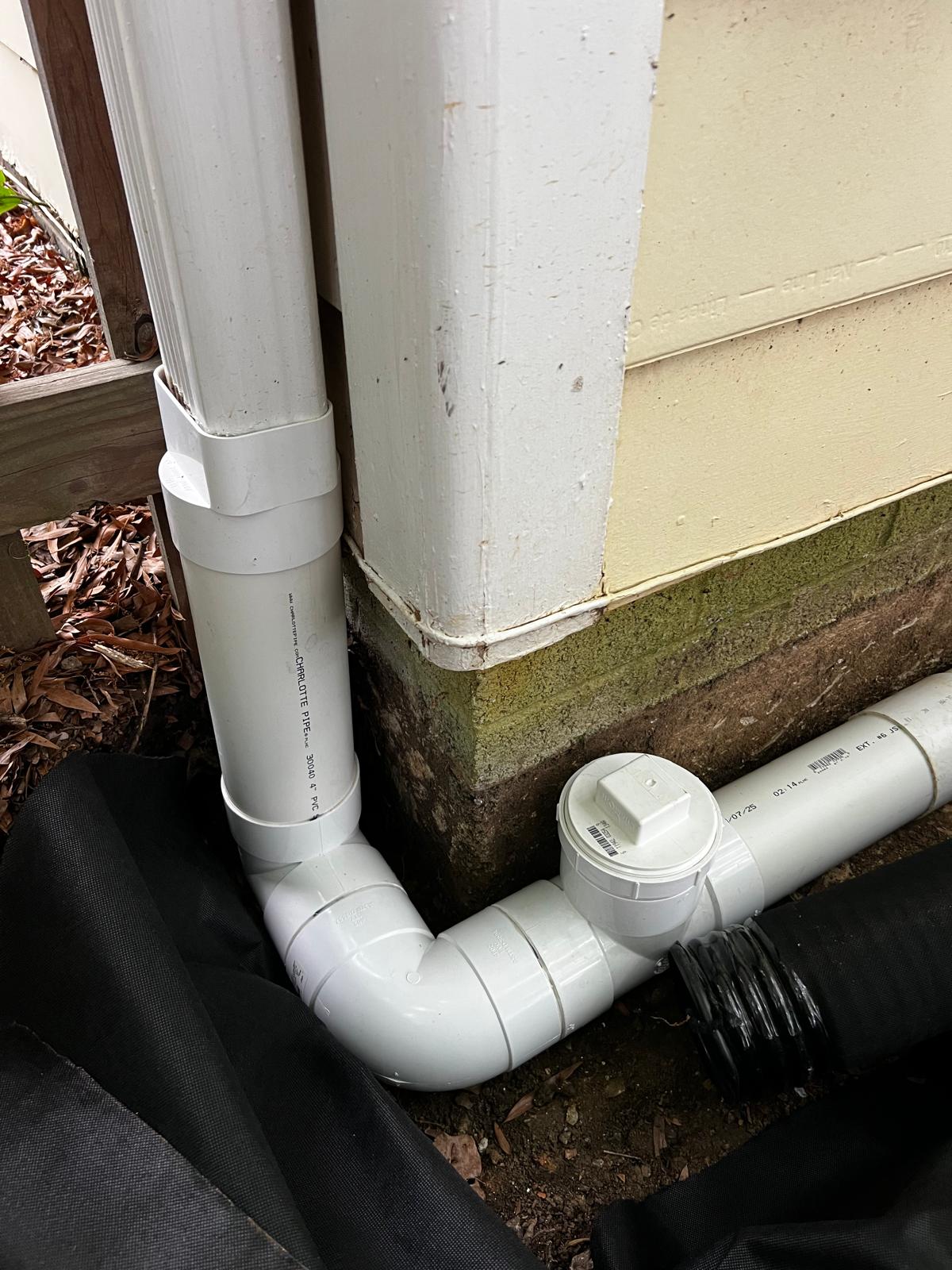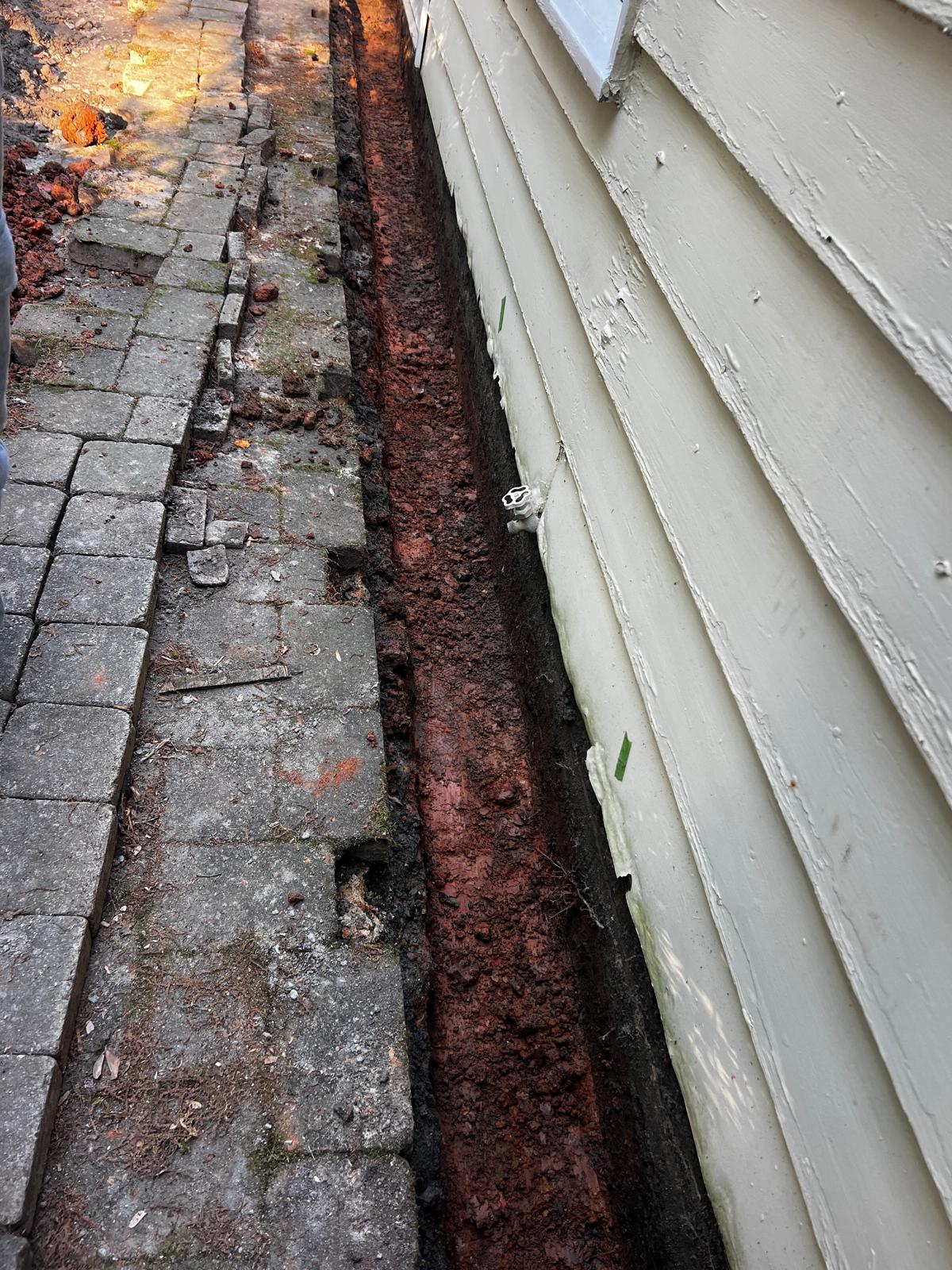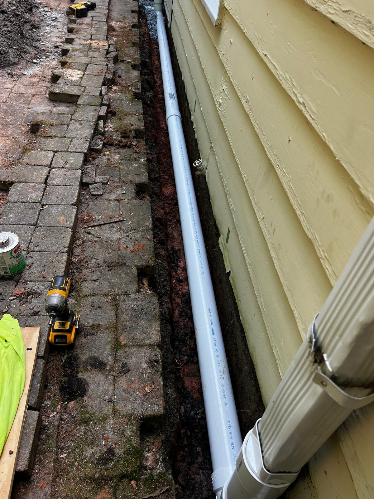 We recently completed a job that involved the replacement of an outdated French drain system and upgrading the existing PVC downspouts, significantly improving water drainage around the property and preventing potential foundation damage and moisture buildup.r
